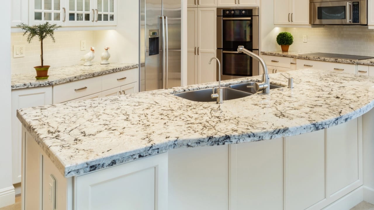 Giallo Ornamental granite, with its dominant gold and brown tones, can appear dated and overly warm. Opt for Bianco Antico granite instead, a stunning white granite with warm veining in shades of beige, brown, and gold. It offers a timeless elegance that complements a variety of kitchen styles.