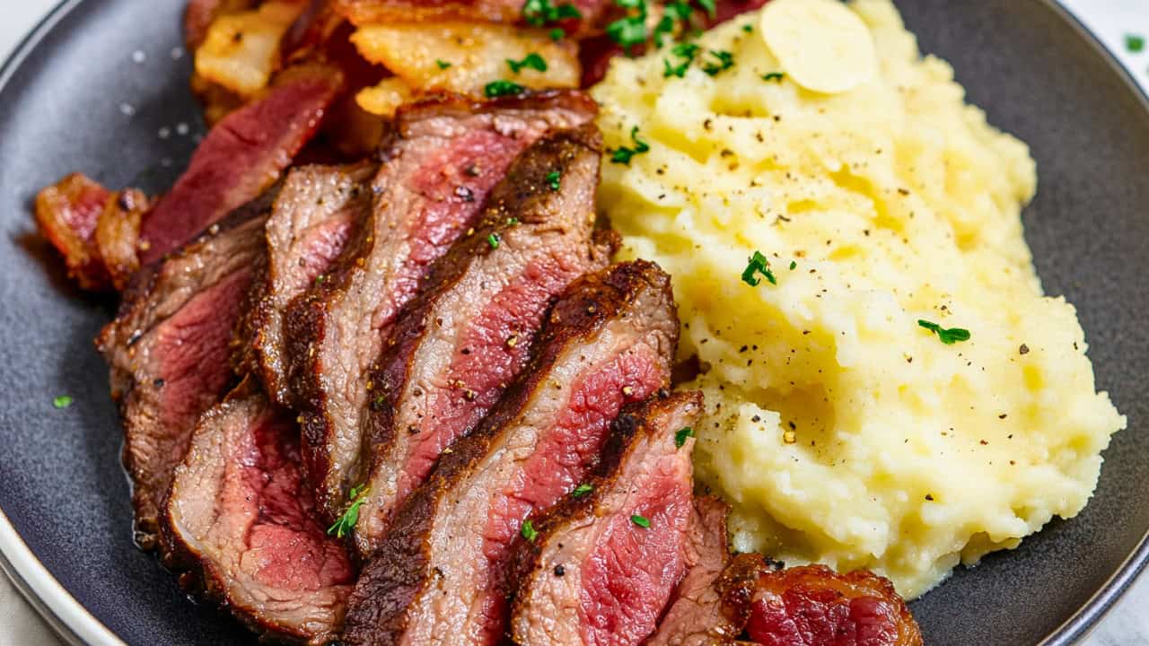 If you’re into carnivore-style meals, this dish hits all the right notes—beef strips crisped up alongside smoky bacon.