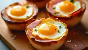 - Serve: Remove the ham and egg cups from the molds and serve hot.