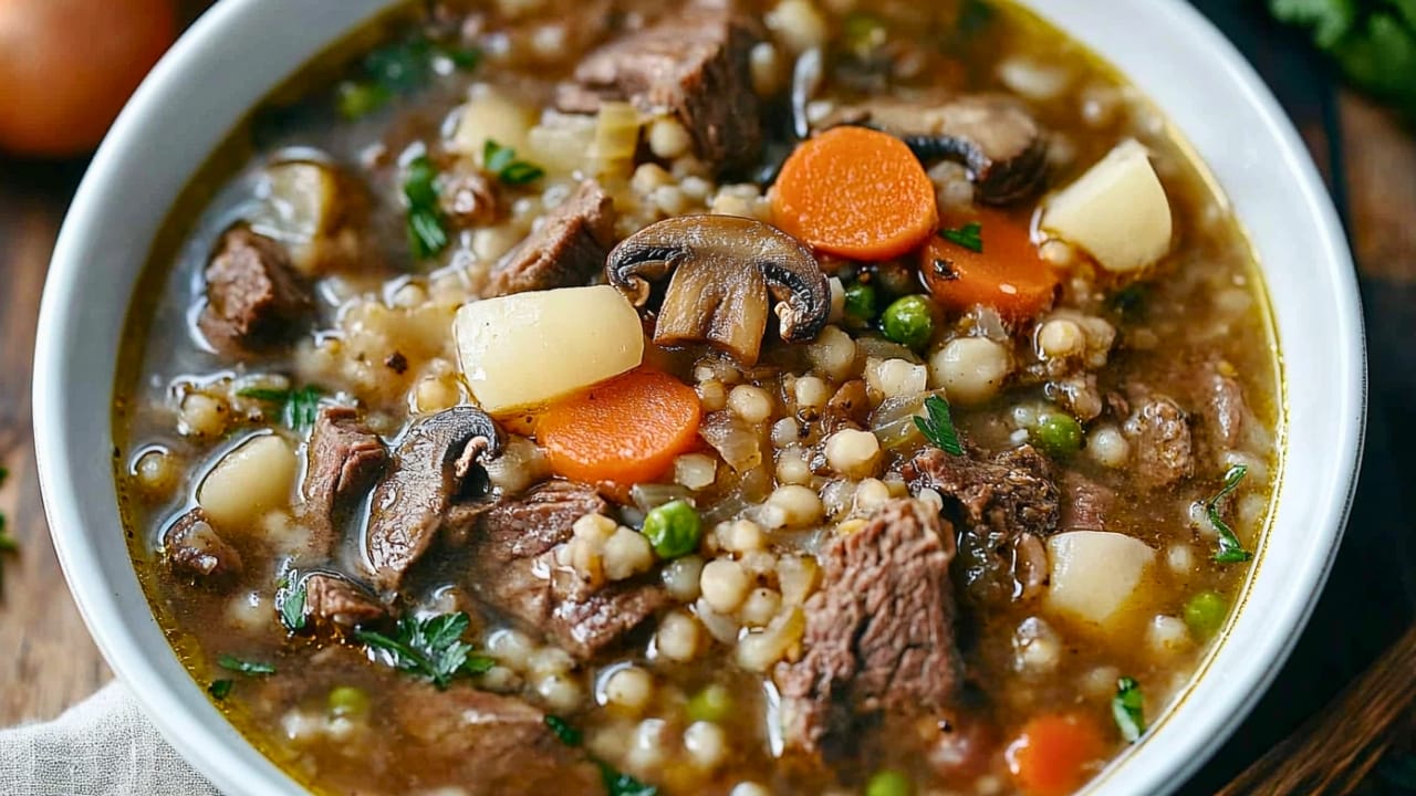 Packed with tender beef, earthy mushrooms, and chewy pearl barley, it’s a soul-soothing dish perfect for chilly nights or lazy weekends.