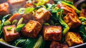 This crispy tofu dish with ginger and spicy greens is a dinner recipe that’s packed with bold flavors, crispy textures, and vibrant veggies. It’s a quick, satisfying option for weeknights that doesn’t skimp on taste.
