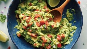 The secret to this guacamole isn’t just its simplicity—it’s the perfect balance of flavors and textures. This recipe takes the classic creamy avocado base and amps it up with chunky pieces of tomato, onion, and fresh cilantro for added depth.
