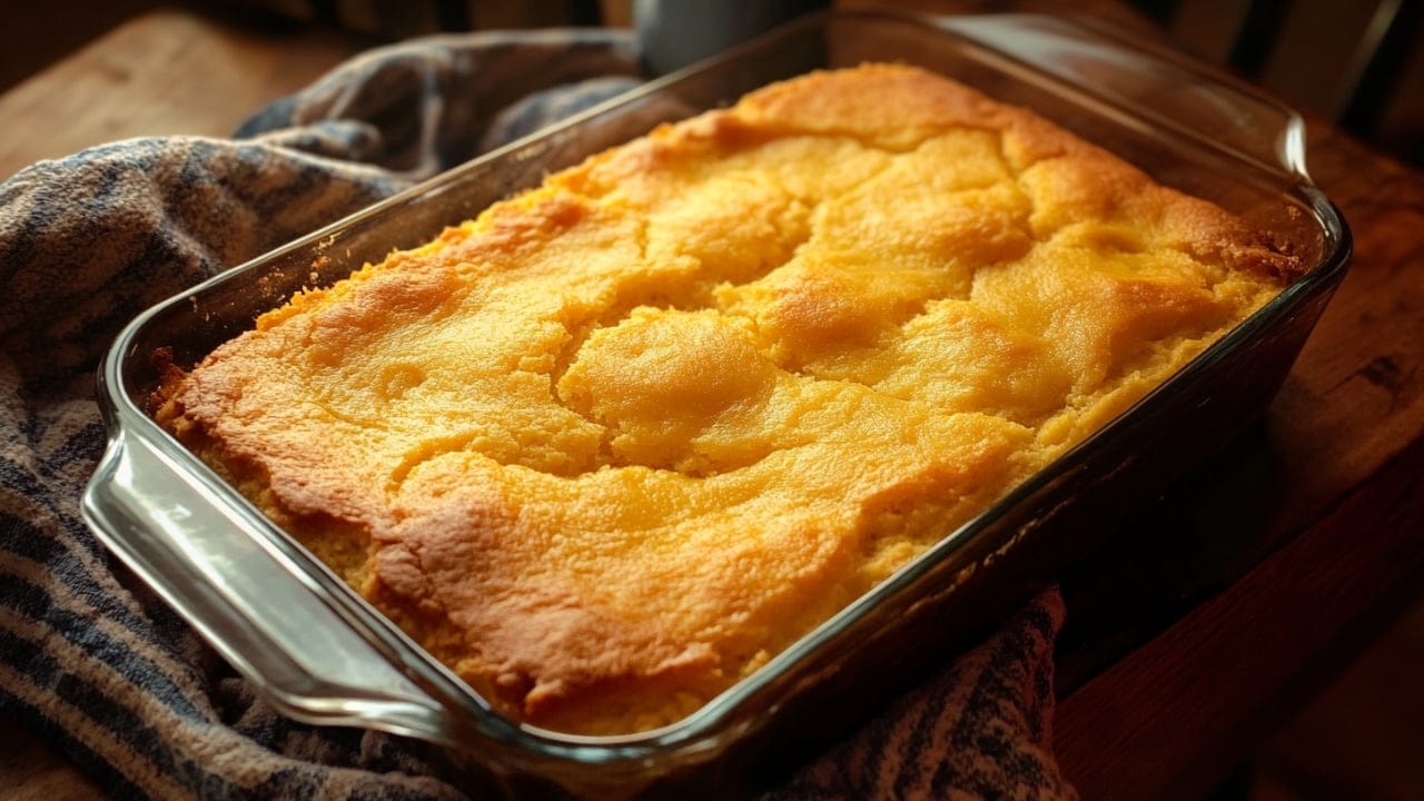 - Place the baking dish in the preheated oven and bake for 35-40 minutes, or until the cornbread is golden brown and a toothpick inserted into the center comes out clean.