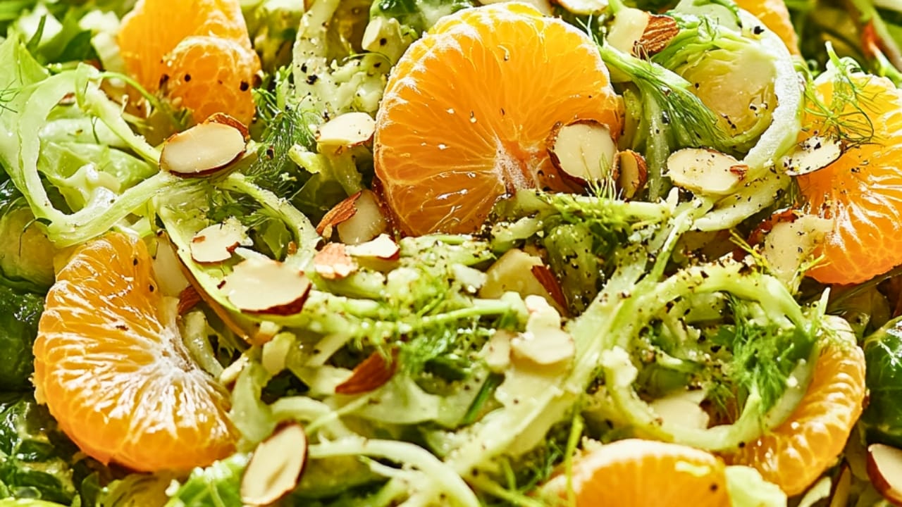 Healthy Shaved Brussels Sprouts, Fennel & Mandarin Salad with Lemon Vinaigrette