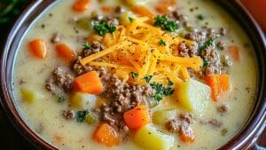 - Hearty and Filling: Packed with ground beef, potatoes, and vegetables, this soup is a complete meal.