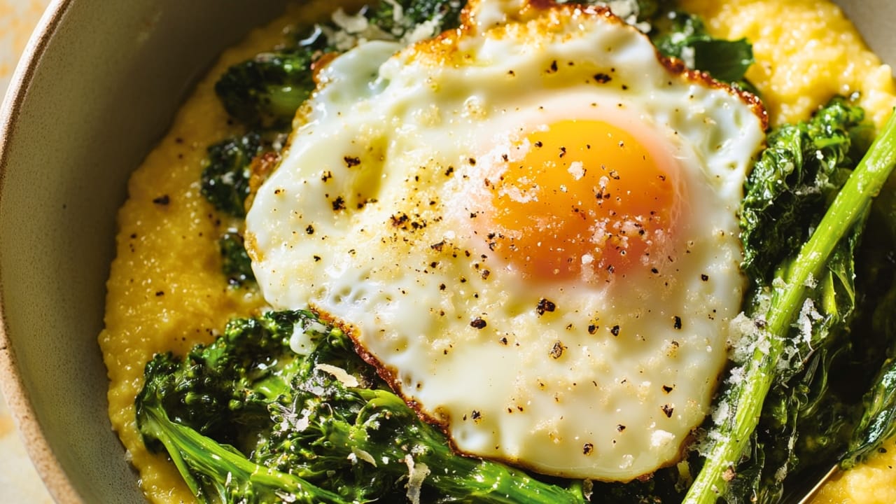 Keyword broccoli rabe dishes, creamy polenta recipe, dinner recipe, Easy dinner recipes, fried egg toppings, polenta dinner ideas, simple weeknight meals, vegetarian-friendly dinners
