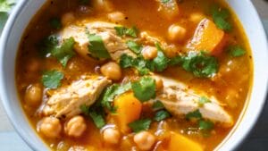 Easy Spiced Chicken Soup with Squash & Chickpeas One Pot Recipe