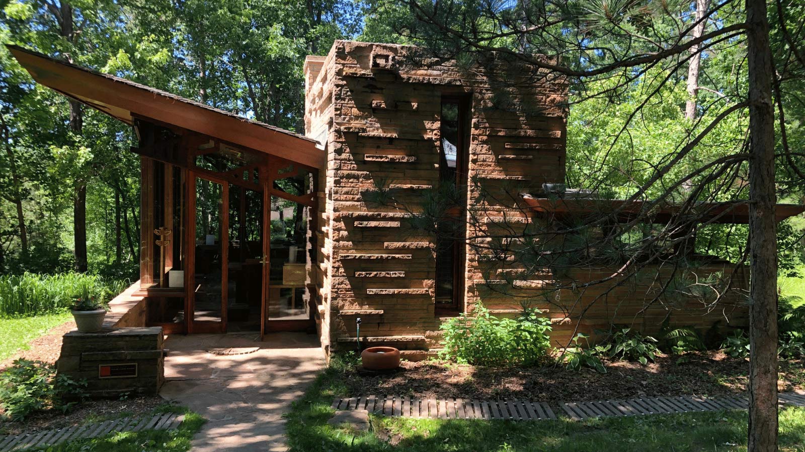 In the late 1980s, a woman named Audrey Laatsch was out canoeing on Mirror Lake. Unfortunately, she tipped over and swam to shore. Once there, she scrambled to the top of the hill. Discovering the Frank Lloyd Wright cottage for Seth Peterson entirely by accident.