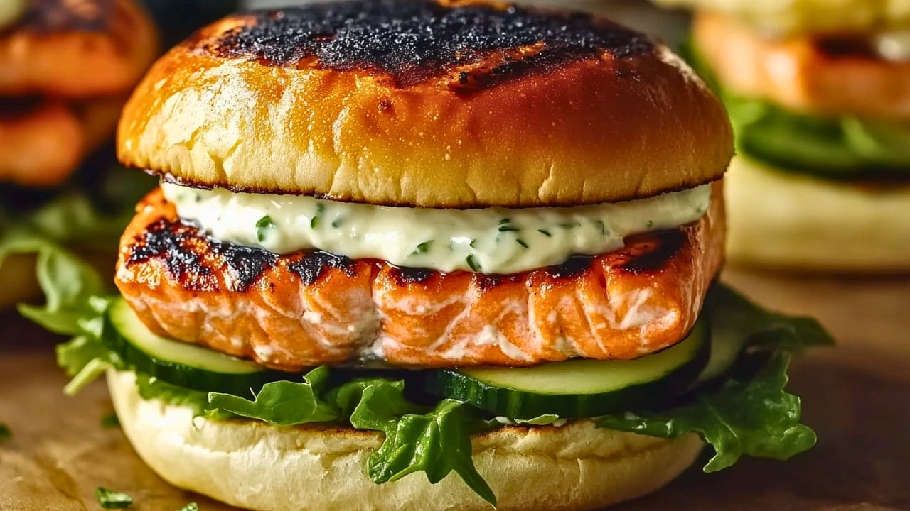 Want a dinner that feels like you went all out—but secretly took barely any effort? This grilled salmon sandwich with lemon aioli is it. Juicy, smoky salmon, crisp greens, cool cukes, and a slather of tangy aioli—all tucked into a buttery, toasted brioche bun.