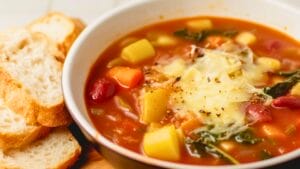 Minestrone is delicious on its own, but it’s even better when paired with crusty bread or a side salad. A sprinkle of grated Parmesan cheese adds a rich, savory touch, and a drizzle of olive oil enhances the flavor.