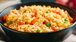 The secret to authentic hibachi-style fried rice lies in its ingredients. This recipe includes jasmine rice for its light and fluffy texture, sesame oil for deep nutty flavors, and a mix of frozen vegetables to add color and crunch.