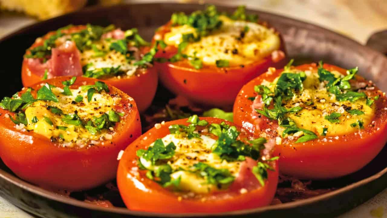 You get this soft, savory paste that bakes right into the tomato shell—and when it crisps slightly in the oven, it becomes something you’ll want to eat straight off the tray.