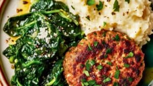 Keyword 30-minute dinner recipe, cauliflower mash recipe, Easy dinner ideas, easy recipe, easy turkey patty recipe, healthy turkey dinner, healthy weeknight dinner, lemon turkey burgers, protein-packed meal, quick turkey patty meal, spinach side dish