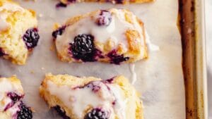 There are countless dessert recipes out there, but these vanilla bean–blackberry scones stand out because they deliver everything you want in a baked treat: rich vanilla flavor, bursts of juicy fruit, a tender, buttery texture, and a sweet, silky glaze.
