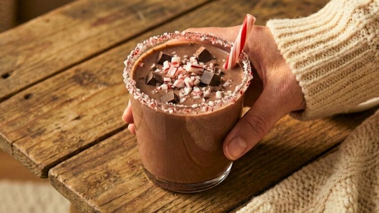 - Garnish: Top with chocolate shavings or hang a mini candy cane on the side of the glass. Serve immediately.