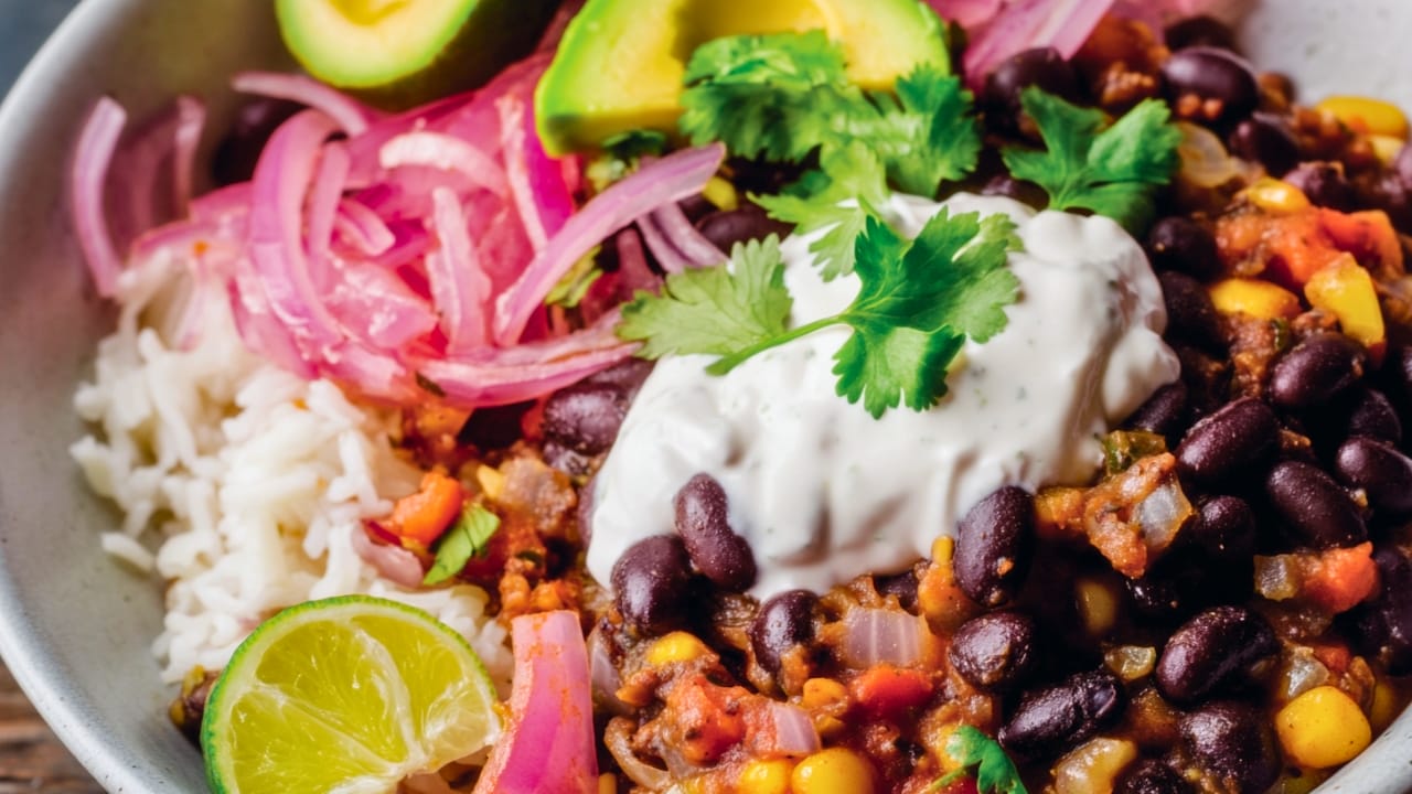 - Assemble and Serve:Divide the cooked bean mixture into bowls or plates. Top each portion with the quick-pickled onions, dollops of lime crema, and fresh cilantro leaves. If desired, add diced avocado as a garnish.
