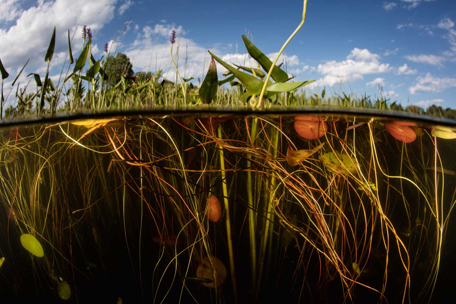 Oxygen enters the water through the atmosphere. But certain plants also contribute to this oxygenation. During photosynthesis, these plants absorb carbon dioxide and release oxygen directly into the water.