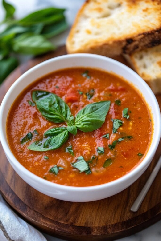 Optional Garnish: Top with homemade croutons, a few fresh basil leaves, or a swirl of cream. For extra richness, you can add a drizzle of good quality olive oil.