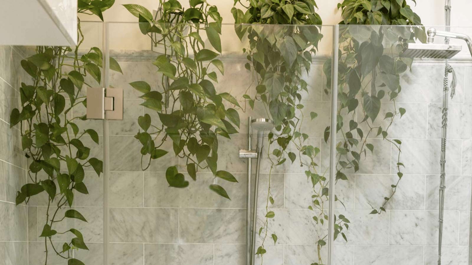 neon pothos in bathroom