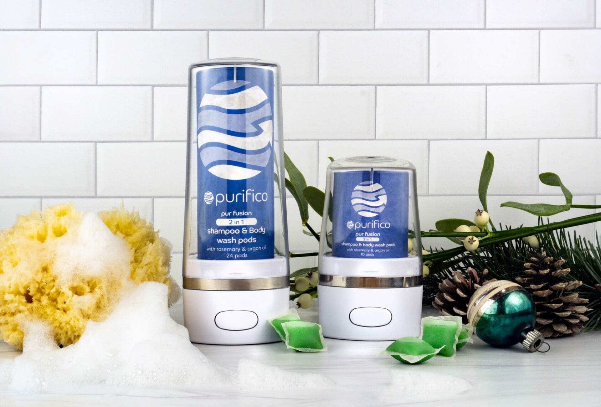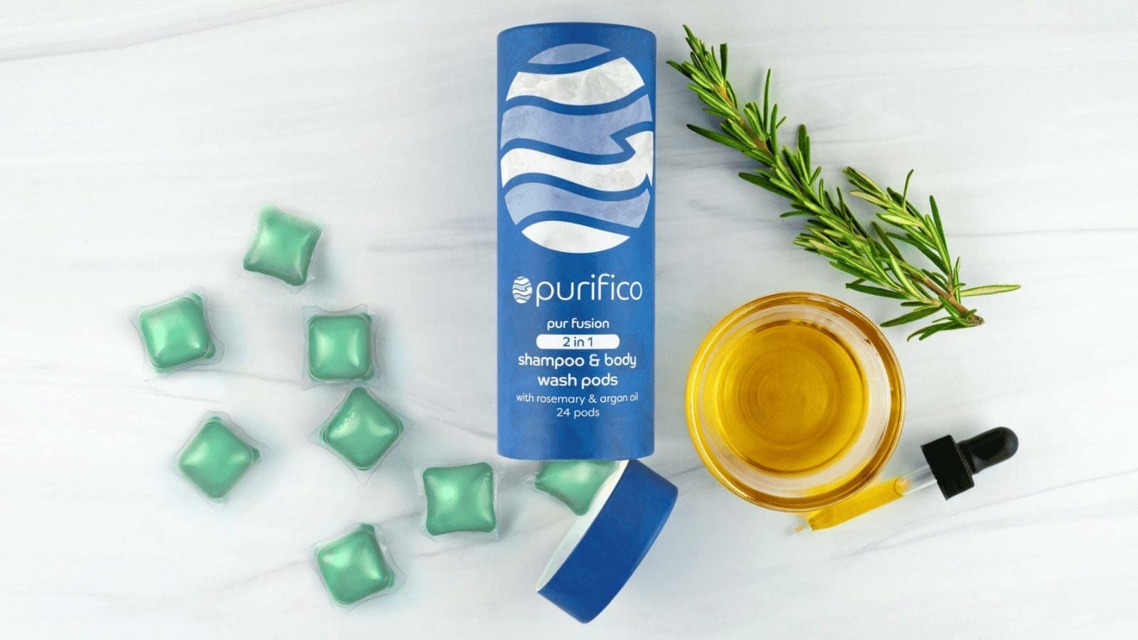 - 10ct tube of pur fusion shampoo & body wash pods, so you can indulge in eco-friendly luxury anytime, anywhere.