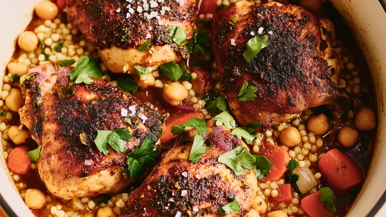 The harissa—a bold North African chili paste—adds just the right amount of heat and depth to elevate the dish. Plus, the couscous absorbs all the juices from the chicken and vegetables, making every bite rich and satisfying.