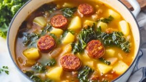 This one pot recipe is not just any soup; it’s a showcase of bold, satisfying flavors from Portuguese cuisine. The combination of chorizo sausage, Yukon Gold potatoes, and collard greens creates a harmony of textures and tastes.