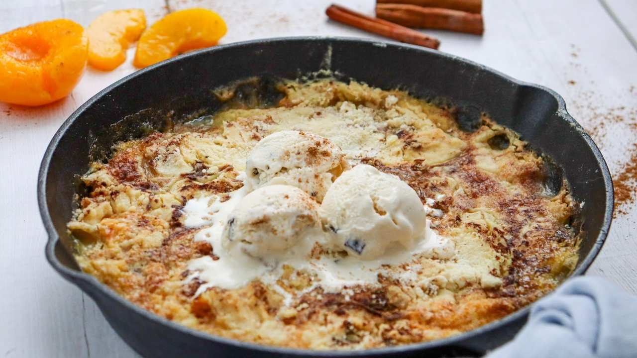 you get hot peaches, a crackly lid, and buttery edges courtesy of a cast iron skillet cake.