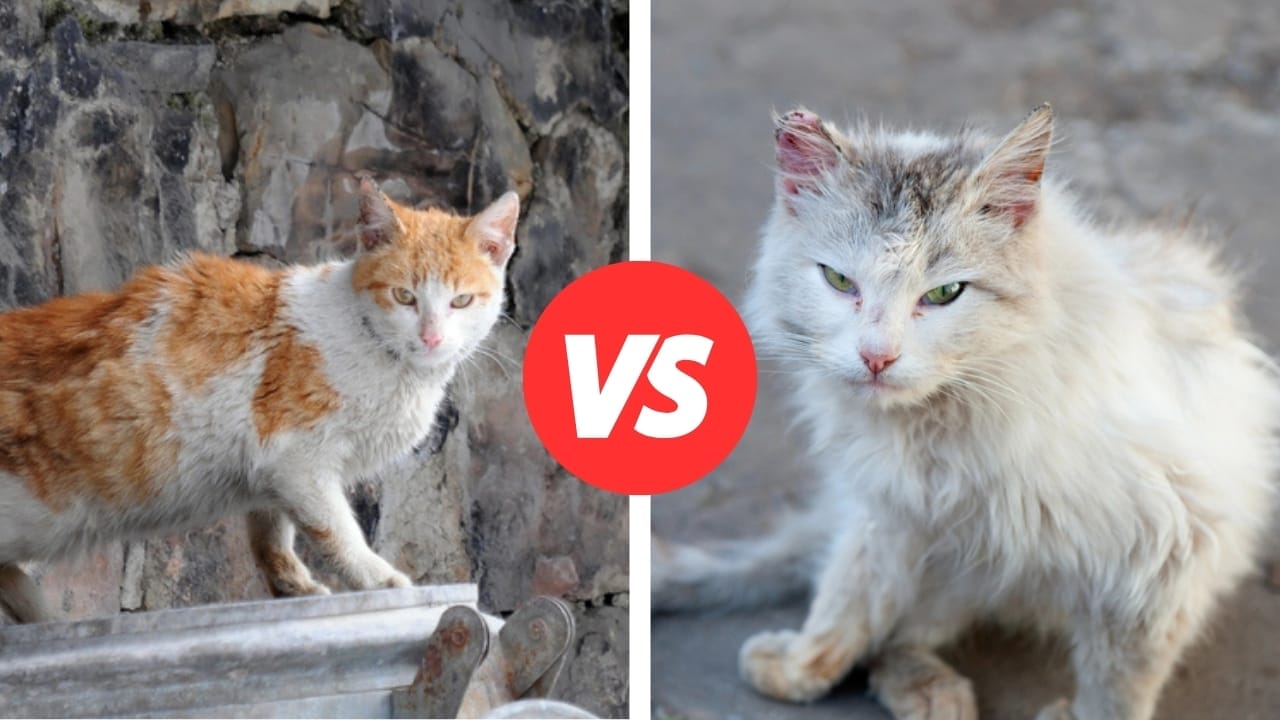 The key difference lies in their socialization and behavior towards humans. Stray cats might approach people, looking for food or a bit of attention, and could eventually be reintroduced to indoor life.
