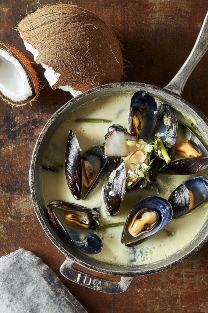 This Thai-style mussels dish with coconut and lemongrass delivers bold flavors, silky textures, and an unmistakable tropical flair.