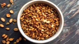 Take a few minutes to whip up a batch today. Whether you’re tackling inflammation or simply craving a tasty treat, sweet and spicy pepitas are a snack you’ll want to keep coming back to!