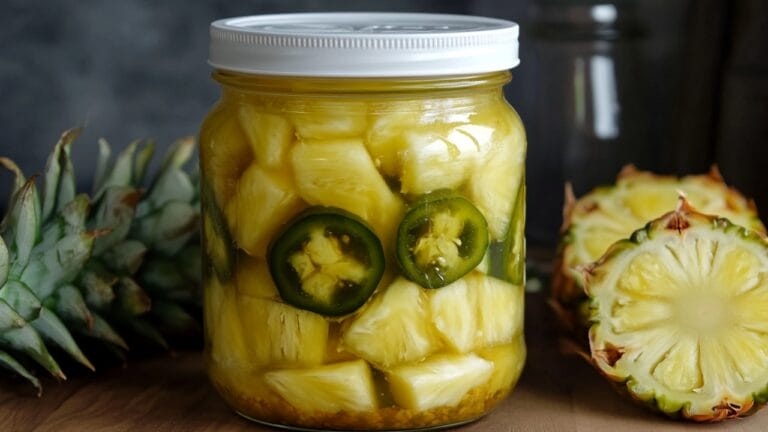 Pickled pineapple is a brilliant tropical twist that combines sweet, tangy, and spicy notes in every bite. This innovative preserve not only delivers a unique flavor profile but also retains pineapple’s natural bromelain enzymes, which aid in digestion and reduce inflammation.
