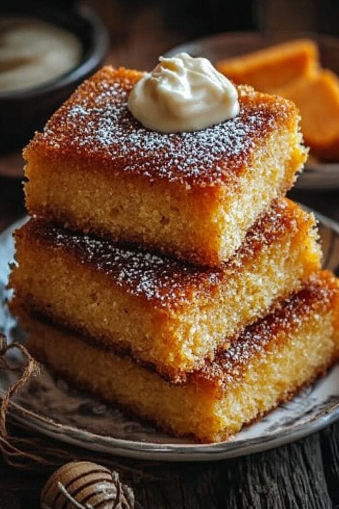 - Let cornbread cool slightly before serving with honey butter.