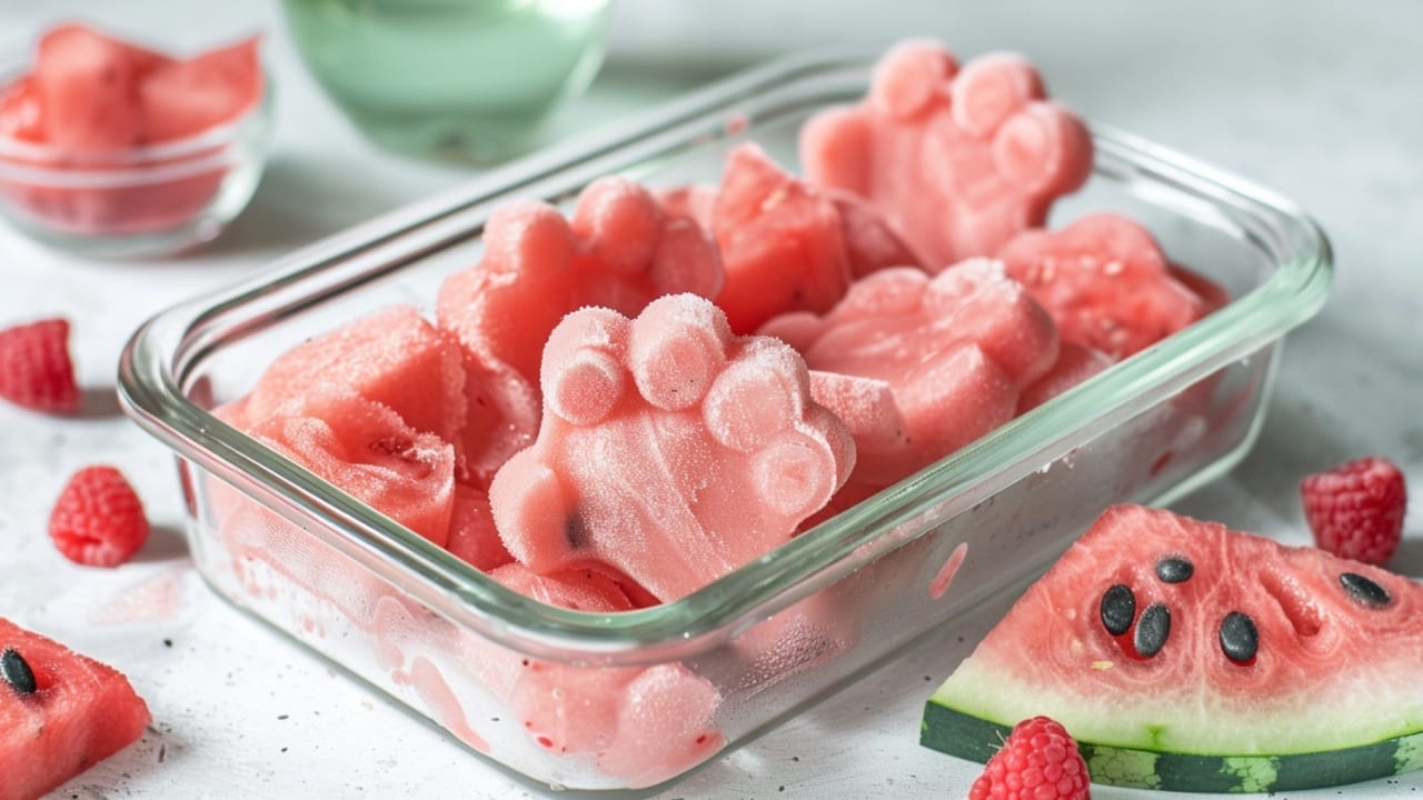 - Pour the pureed watermelon into each cell, filling them almost to the top.