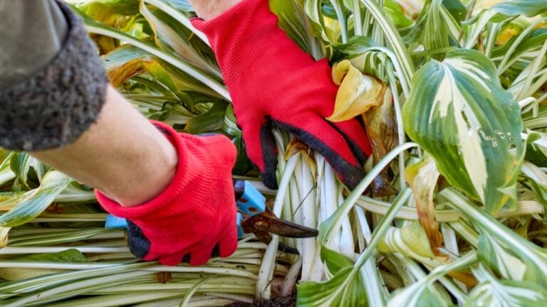 The best way to trim hostas in the fall is simple and doesn’t take much time. You’ll just need some basic garden tools, like a pair of sharp garden shears or scissors, and a pair of gloves to protect your hands.
