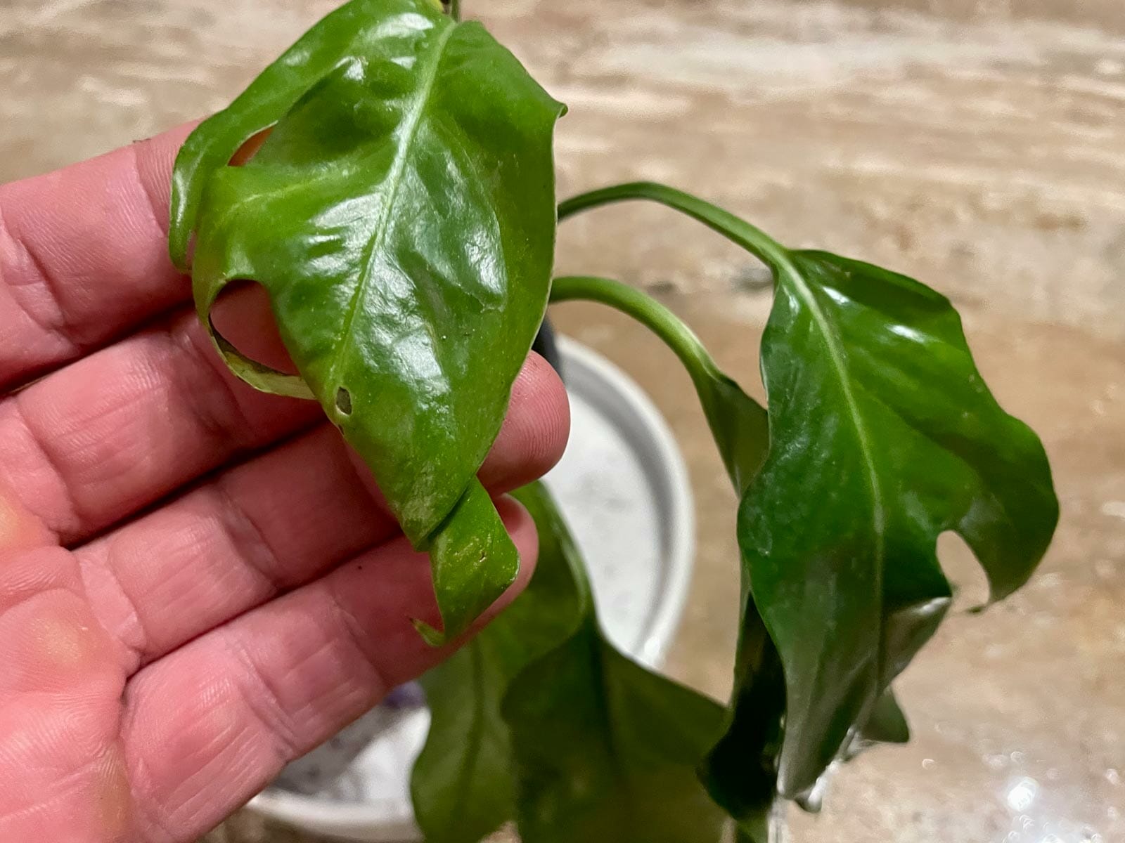 As a rule, plants with velvety leaves need higher humidity levels than those with leathery leaves. This means you’re more likely to notice this problem with Scindapsus varieties, such as Satin Pothos