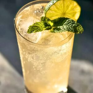 Garnish with a fresh mint sprig and a lime wedge. Serve immediately and enjoy!