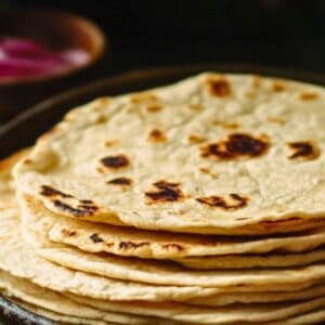 These tortillas are best enjoyed fresh but can be stored wrapped in a towel and placed in a sealed plastic bag for 2–3 days in the fridge or frozen for up to 3 months.