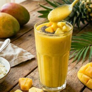 Keyword Cottage cheese recipe for weight loss, cottage cheese smoothie recipe, Easy mango pineapple smoothie, Healthy breakfast smoothie with cottage cheese, High-protein tropical smoothie, Low-fat cottage cheese smoothie, Quick protein smoothie ideas