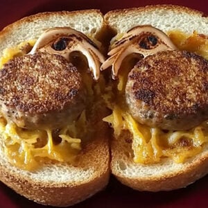 Assemble the Casserole Base: Arrange the uncut slices of toast over the cooked sausage mixture in the skillet, forming an even layer. Place the bread cutouts around the toast slices to fill in the gaps. Pour any remaining custard over the top to ensure everything is moistened. Bake in the preheated oven for about 15 minutes.