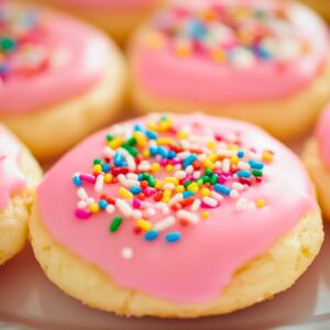 This dessert recipe recreates the classic grocery store frosted sugar cookies, known for their soft, cake-like texture topped with a thick layer of sweet, colorful frosting and sprinkles. Perfect for celebrations or as a nostalgic treat, these cookies are easy to customize with different frosting colors for any occasion.