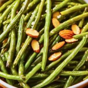 Keyword easy green beans recipe, healthy food recipes, healthy vegetable side dish, low-calorie holiday side, quick vegetable recipe, roasted almond green beans