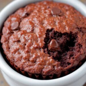 This high-protein dessert combines Greek yogurt, egg whites, and cocoa powder for a fluffy, chocolatey treat. Made in a blender for ease, this gluten-free muffin is perfect for a quick and nutritious indulgence.