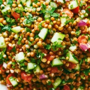 This vibrant high-protein vegan tabbouleh combines nutty buckwheat, hearty lentils, and crunchy sunflower seeds with crisp vegetables and fresh herbs. A zesty lemon-garlic dressing brings everything together, making it a refreshing and nourishing dish perfect for warm-weather meals.