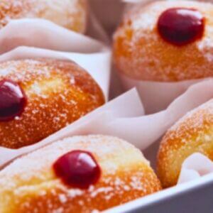 Fill with Jam: Using a piping bag fitted with a ½-inch metal tip, fill each donut with your chosen jam. Insert the tip into the side of each donut and squeeze a few tablespoons of jam into the center.