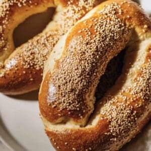 This Jerusalem-style bread bagel recipe uses a rich dough with milk, sugar, and oil to create a tender crumb and crisp crust. Unlike American bagels, these aren't boiled—they're dipped in pomegranate molasses and sesame seeds for a nutty-sweet finish before baking.