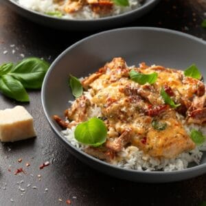 Plate the Marry Me Chicken with extra sauce.