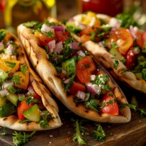 Mediterranean Chopped Salad Pitas are a refreshing and flavorful lunch option, featuring a vibrant mix of fresh vegetables, protein-rich chickpeas, tangy feta cheese, and a zesty homemade dressing, all nestled inside warm pita bread.