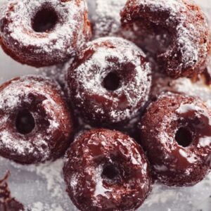 This classic dessert recipe for Old-Fashioned Chocolate Cake Donuts offers rich, chocolatey flavors with a crisp exterior and a soft, moist interior. These donuts are coated with a sweet vanilla glaze, making them a delightful treat perfect for any dessert spread.