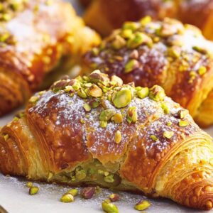 These Pistachio Croissants offer a delightful combination of buttery, flaky pastry filled with a rich, nutty pistachio paste, enhanced with a touch of orange syrup for a bright, citrusy note. Perfect for a quick dessert, this recipe uses day-old croissants to achieve a crisp, golden exterior and a melt-in-your-mouth interior.