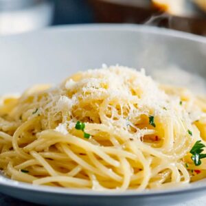 This comforting spaghetti recipe is perfect for a cozy meal for two, highlighting pantry staples like garlic, olive oil, and a touch of spice. The mellow richness of sautéed garlic, paired with fresh lemon and parsley, makes this a standout among simple recipes for two.